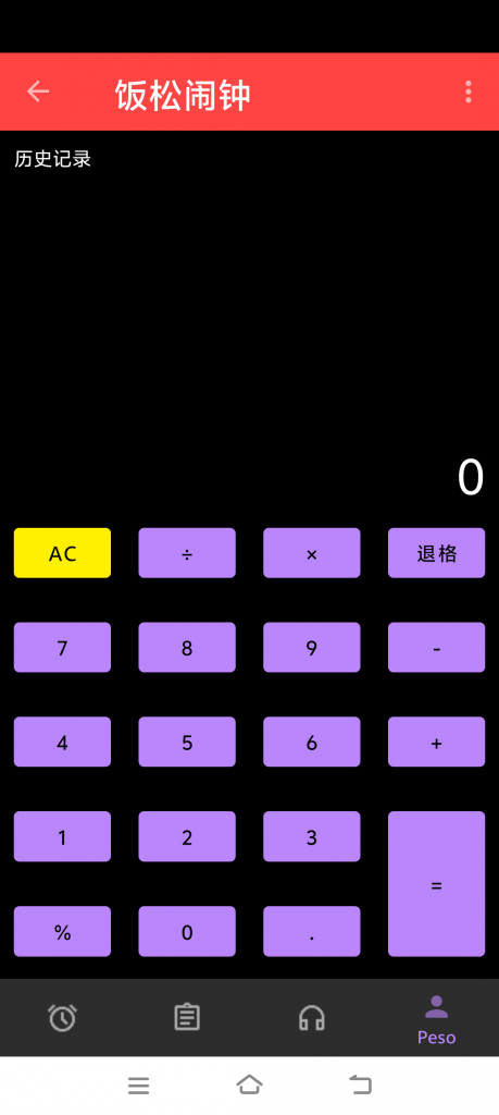- 打开饭松闹钟 APP → 底部「Peso」个人页 → 找到「计算器」入口