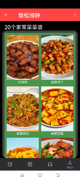不用再为了找菜谱下载专门的美食 APP,也不用对着复杂的教程发愁,打开饭松闹钟,就能查看 20 道经典家常菜的详细做法,轻松搞定一日三餐,告别 “今天吃什么” 的烦恼。